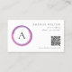 Modern business referral card featuring a simple yet professional design with your monogram inside of a pink and purple circle. Use the template to generate a QR code or remove it in the design editing tool.