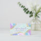 Cette superbe carte de référence capture l'ironie magique d'une pierre à gemme opale. Le design est un mélange captivant de couleurs pastel, principalement violettes, bleues et roses, avec des accents d'or qui apportent une touche de luxe. L'effet chatoyant et multifacettes crée un look vraiment unique et attrayant. Cette carte moderne est parfaite pour les entreprises qui souhaitent projeter un sens de l'élégance, de la créativité et du raffinement, comme un coiffeur, un maquilleur, un spa ou un salon.