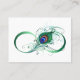 Symbole de l'infini avec une plume de paon artistique, verte et vive sur un arrière - plan blanc. Style tatouage.