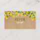 Carte de référence moderne de citrons rustiques verts. Parfait pour un large éventail de professions : spas, fleuristes, soins de beauté, coiffeurs et consultants de beauté, stylistes, maquilleurs, esthéticiennes et spas pour n'en citer que quelques-uns ! Personnalisez-vous en ajoutant vos coordonnées au verso avec votre offre de réduction spéciale. Conçu par Thisisnotme©
