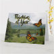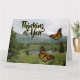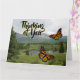 Carte Pensées pour toi avec la nature, le lac de montagne, les montagnes et les papillons monarques. Créez votre carte unique avec du texte et vos photos à l'intérieur. Montrez à vos amis, à votre famille et à vos associés d'affaires qu'ils sont uniques et spéciaux avec leur nom et votre message imprimés sur le devant et/ou à l'intérieur. L'enveloppe est incluse.