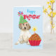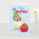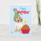 Joli salutations d'anniversaire avec ce design mignon avec un joli chiot français avec casquette de fête et un cupcake d'anniversaire. Le texte peut être facilement changé; il suffit de cliquer sur le bouton personnaliser.