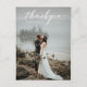 Carte de remerciement photo avec texte personnalisable pour un mariage romantique. Texte personnalisable. Le filtre de densité neutre sur le devant peut être retiré, changé ou édité. Supprimer, ajouter ou modifier le texte. Image avec écriture romantique moderne. Excellent ajout à toute suite d'invitation de mariage. Cette carte comporte les noms des mariés et la date du mariage au recto. La date du mariage et les noms peuvent être supprimés en supprimant simplement le texte dans l'option de personnalisation.