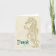 Cette carte de remerciement entièrement personnalisable présente une empreinte de cheval marin dans le sable avec les mots 'Merci' écrits en deux nuances de bleu sur le devant.