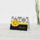 Élégante carte de remerciement réalisée dans un motif damassé noir et blanc, en haut à l'avant et fond noir uni, en bas. Des graphiques d'un ruban grosgrain jaune, avec une rose jaune, ornent l'avant de la carte. Le texte en écriture gris foncé, à l'intérieur, et rose sur le devant, est prêt à être personnalisé selon vos besoins. Une façon charmante d'envoyer vos remerciements après le mariage ou d'autres occasions spéciales.