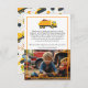 Terminez la grande journée de votre petit bâtisseur avec cette charmante carte de remerciement sur le thème de la construction, présentant un tombereau jaune vif et un design joyeux « Merci ! ». Parfait pour exprimer votre gratitude après une célébration sur le thème des camions, cette carte est facile à personnaliser avec le nom de votre enfant ou un message personnalisé. Une façon attentionnée de remercier les invités d'avoir partagé le plaisir !