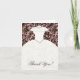 Une note de remerciement de robe de mariée tendance présente une élégante robe de mariée sur un fond Damask marron et rose. Les invitations de fiançailles assorties, les timbres-poste et les autocollants sont disponibles dans notre boutique sur www.celebrateitweddings.com. Également disponible dans un grand assortiment de couleurs. Personnalisez avec vos informations et vous êtes prêt à partir ! ©Tracy Ann Digital Art