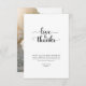 Envoyez vos sincères remerciements avec cette carte de fiançailles inspirée de la plage rustique. Avec une photo sereine de bord de mer et un script fantaisiste "Amour & Remerciements", elle allie l'élégance bohème au charme minimaliste. Parfaite pour immortaliser votre célébration tropicale tout en partageant votre gratitude de manière élégante et moderne.