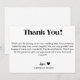 Carte de remerciement de mariage avec un script de calligraphie simple ; texte par défaut pour remercier les invités de la célébration et du cadeau. Ajoutez votre nom en bas de cette carte pour la personnaliser.