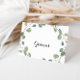 Cette carte de remerciement de mariage pliée à calligraphie d'eucalyptus est parfaite pour un mariage rustique. Le design présente des branches et des feuilles d'eucalyptus vert botanique dessinées à la main qui ornent une couronne élégante.