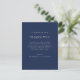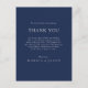 Cette carte de remerciement de réception classique bleu marine argenté est idéale pour un mariage simple, moderne, romantique et élégant. La palette de couleurs bleu marine foncé et la typographie vintage minimale lui donnent une touche formelle chic et classe. Le design est flexible, parfait pour une soirée contemporaine basique, un mariage de printemps, d'automne, d'été ou d'hiver. Gardez-le tel quel ou choisissez de le personnaliser avec des illustrations ou des graphiques de votre choix.
