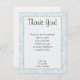 Ces magnifiques cartes de remerciement plates 4x5 sont parfaites pour remercier vos invités pour les cadeaux qu'ils ont apportés, ou même simplement pour leur compagnie lors de votre événement. Parfait pour une baby shower ou une fête d'anniversaire ! Celles-ci sont entièrement personnalisables et le poème peut être supprimé complètement en supprimant simplement le texte pour laisser place à un message personnel manuscrit, ou vous pouvez personnaliser avec votre propre poème ou texte. Celles-ci sont imprimées sur du papier lisse, vibrant, mat de 110lb avec un contenu recyclé à 50%. Parfait pour vos invitations les plus formelles, cartes de remerciement et annonces d'événement. Celles-ci sont livrées avec des enveloppes blanches standard. Nous avons toute une gamme dédiée à ce design ici dans notre boutique zazzle sous l'onglet de menu *Acheter par THÈME pour inclure des invitations (5x7), étiquettes de retour, étiquettes d'expédition, sceaux d'enveloppe, timbres-poste, piques à gâteaux, emballages de bouteilles d'eau, emballages de barres Hershey's 1,55 oz grandes, autocollants Hershey's Miniature, emballages de sacs de pop-corn micro-ondables, cartes de lieu écriture, toppers