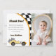 Carte de remerciement pour fête d'anniversaire de voiture de course jaune