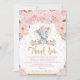 Personnalisez cette jolie carte de remerciement pour bébé éléphant floral avec votre message de remerciement facilement et rapidement, il suffit d'appuyer sur le bouton de personnalisation pour réorganiser et formater le style et l'emplacement du texte. Comprend le joli design floral au verso de l'invitation.