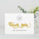 Élégante carte de remerciement d'entreprise avec logo personnalisé ou autre image au recto et texte personnalisé, coordonnées de l'entreprise et icônes de réseaux sociaux au verso. Vous pouvez modifier la couleur de fond, les polices et les couleurs de police avec l'outil de conception