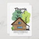 Ces Cartes de Remerciements Client, modernes et plates, présentent une jolie décoration en bois dessinée à la maison avec des arbres. Une zone de texte est fournie pour le nom et les coordonnées de votre société immobilière. L'intérieur est vierge avec beaucoup de place pour votre message personnel à votre client. Parfait pour les Réalisateurs, les Constructeurs, les Architectes et les Designers d'Intérieur.