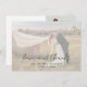 Carte de remerciements photo moderne avec un design simple avec "amour et merci" dans une typographie script de style rustique avec vos noms et date mariage sur votre photo préférée avec une superposition opaque. Cette carte de remerciements élégante à la disposition minimaliste conviendra à tous les styles de mariage.