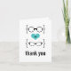 Carte de remerciements de Mariage Geeky Glass, original et chic, avec un coeur turquoise flanqué de deux paires de lunettes geeky, une paire de manies et une paire de poutres représentant le marié et la mariée. Ce carte de remerciements décalé mais sophistiqué convient parfaitement à votre mariage nerveux ! Facile à customiser, ajoutez simplement le texte personnalisé de votre choix. Cliquez sur le bouton "Customiser" pour trouver d'autres options de personnalisation.