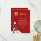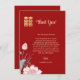 Ce carte de remerciements chinois mariage est orné d'un double symbole de bonheur doré, d'une fleur de lotus aquarelle peinte sur un arrière - plan rouge rubis et d'un élégant script classique.