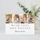 Carte de remerciements Mariage moderne Photo Strip - Une façon chic et distinctive d'express votre gratitude. Ce carte de remerciements mariage comporte une bande de quatre photos sur le devant et une photo sur le dos, totalisant cinq photos. Idéal pour les couples qui souhaitent envoyer un remerciement élégant et sincère à leurs amis et à leur famille d'une manière unique. Le design combine un texte élégant et élégant avec une belle calligraphie de script, créant une atmosphère intemporelle et sophistiquée. Personnalisez ce modèle en ajoutant vos cinq photos et en adaptant le message à votre style.