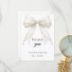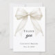 A modern and elegant Baptism, Christening thank you card. A white background, decorated with a large ivory colored bow with pearls. On the front the text: Thank You, name, and a date.