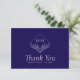 Carte De Remerciements Boho Leaf Monogramme Simple Mariage bleu et blanc