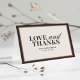 These elegant, old money style wedding folded thank you cards feature a romantic neutral color palette of espresso brown, creamy ivory, and soft mocha. There is a mix of classic text and modern calligraphy that says "love and thanks," for a classy and minimalist design perfect for your timeless, formal, or rustic western wedding.