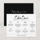 A clean black and white cake care guide designed for bakery business packaging. Simple icons and elegant script typography create a clear, minimalist look that feels professional and trustworthy. This text-forward design keeps instructions easy to read while complementing handmade cakes with calm, refined balance inspired by Japanese design sensibility. 🍰🖤✨