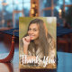 Le diplôme est écrit en blanc écrit manuscrit sur votre photo portrait senior fait un chic et moderne carte de remerciements de graduation. Customisez avec votre nom et le lycée ou la classe universitaire de 2025 sous la typographie audacieuse et ajoutez votre message de remerciement personnel sur le dos de ces élégantes cartes d'études supérieures superposées texte.