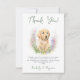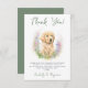 Invitation vos amis et votre famille pour célébrer l'arrivée de votre nouveau bébé garçon avec cette adorable invitation de chiot bonjour, accessoires de fête et cadeaux. Cette invitation baby shower présente un récupérateur doré à l'aquarelle peint à la main, parfait pour les amoureux de les chiens ! Le design est moderne et tendance, avec un jeu de couleurs vert sage et le texte "bonjour bébé" pour célébrer l'arrivée prochaine de votre nouveau bébé. DROIT D'AUTEUR © 2023 Judy Burrows, Black Dog Art - Tous droits réservés. Joli Chien Chien Chien Moderne Sage Vert Baby shower Carte de remerciements