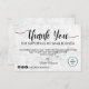 La carte de remerciement client personnalisable White Marble Script est un moyen élégant et stylé de montrer votre appréciation à vos clients. La carte présente un fond en marbre blanc avec une belle police script qui indique "Merci" en feuille d'or. Vous pouvez personnaliser la carte en ajoutant votre propre message, logo et couleurs de marque. La carte de haute qualité est imprimée sur du papier cartonné épais et est livrée avec une enveloppe assortie. Cette carte est parfaite pour les entreprises qui cherchent à créer une expérience mémorable et personnalisée pour leurs clients.