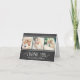 Modèle de carte de remerciement de mariage multi-photos de style tableau noir plié comprenant trois photos*, ainsi que du texte personnalisé et un message qui peut être personnalisé. Apparence de craie blanche manuscrite sur une image de fond de style tableau noir texturé.