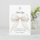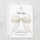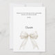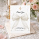 A modern and elegant Confirmation thank you card. A white background, decorated with a large ivory colored bow with pearls and a golden cross. On the front the text: Thank You, name, and a date.