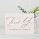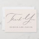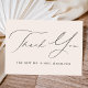 Carte de remerciements de mariage élégant avec "Merci" dans un script de calligraphie noir avec votre nom affiché ci-dessous contre un arrière - plan crème. L'élégante carte de remerciements de mariage s'inverse pour afficher votre message de remerciement personnalisé et vos prénoms en lettres noires. Le design est coordonné avec notre collection Modern Elegance mariage.