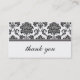 Dites merci avec style avec ces élégantes cartes de remerciement noir et blanc damassé. La taille est celle d'un carte de visite. Peut être customisé à une carte plus grande si demandé.