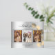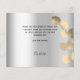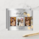 Ajoutez 3 de vos photos d'anniversaire, la taille verticale, une date, un nom et la note de remerciement. Un arrière - plan à l'aspect faux argenté avec du texte et un cadre noirs, un eucalyptus doré sprig. Le texte : Merci sur l'avant et votre nom sur l'arrière sont écrits avec une écriture manuscrite stylisée avec des swashes. 1 feuille = 1 arête imprimée en Carte de remerciements sur l'arête