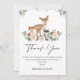 Carte de remerciements de Baby shower en bois mignon Ce carte de remerciements de baby shower en bois aquarelle est composé de cinq animaux en bois mignons, de feuillage vert et de roses roses. Cette carte de bois est une excellente façon de remercier les invités d'être venus à votre baby shower à thème boisé.