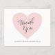Carte de remerciements de baby shower à petit prix avec un design simple avec "Merci" dans une typographie fantaisiste à l'intérieur d'un coeur rose pastel avec vos noms ci-dessous. Le côté arrière a votre message personnalisé, ce qui rend l'envoi de vos cartes de remerciement rapide et facile. Ce design simple et moderne est parfait pour un baby shower de fille.