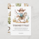 Personnalisez votre propre carte de remerciement d'anniversaire sur le thème des cowboys avec ce design charmant. La carte présente une illustration détaillée d'un jeune cowboy à cheval, dressé contre un arrière - plan blanc.