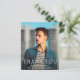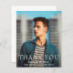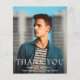 Carte de remerciements moderne de graduation budgétaire avec un design simple et masculin avec "Merci" en gros caractères gras avec le nom du diplômé, l'année scolaire et de classe sur votre photo préférée. L'arrière dispose d'une planche de mortier bleu marine avec votre message personnalisé. Ce carte de remerciements est parfait pour un type diplômé.