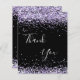 Un carte de remerciements d'anniversaire féminin et élégant. Une couleur noire arrière - plan. Avec lavande, violet confetti. Sur le devant, script écrit à grande main et texte : Merci. Retour : Personnalisez et ajoutez Votre note de remerciement et votre nom. Le nom est écrit avec un script de style moderne écrit à la main.