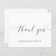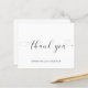 Carte de remerciements à petit budget avec calligraphie avec des swashes et des coeurs en noir sur un arrière - plan blanc. Utilisez le modèle pour ajouter vos noms à l'avant et votre message personnalisé. La disposition simple et minimaliste et beaucoup d'espace ouvert donnent à ce design une atmosphère moderne et la calligraphie lettrée et coeurs lui donnent une touche romantique. Un design non photo pour un couple marié qui veut des cartes de remerciements sans photos.