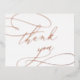 Ce carte de remerciements mariage romantique en feuille d'or rose est parfait pour un mariage simple. Le design classique moderne comprend des tourbillons fantaisistes et des fleurs fantaisistes avec une superbe typographie élégante en lettrage à la main dans une luxueuse feuille d'or rose pressée. Le dos est vide pour pouvoir écrire un message personnel. Ces cartes peuvent être utilisées pour un mariage, une douche nuptiale ou tout événement spécial.