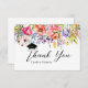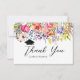 Carte de remerciements de printemps Fleur sauvage coloré. Ce design présente un agencement de fleurs d'aquarelle dans les tons rose et violet, jaune dans la verdure rustique du jardin.