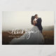 Une façon géniale et réfléchie de remercier vos amis, votre famille et vos collègues qui vous ont honoré de leur présence le jour de votre mariage avec cette photo minimaliste moderne, cartes de remerciement avec script écrit "merci" et un coeur d'amour.