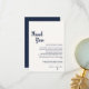 Carte de table Merci pour la réception de mariage. Le modèle a plusieurs lignes pour votre message de remerciement personnalisé. Calligraphie minimaliste, Dusty Blue typographie couleur.