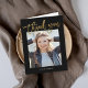 Cette photo moderne de remerciement note avec la calligraphie moderne merci en or et une grande photo client. L'intérieur comprend un message de remerciement générique que vous pouvez personnaliser pour chaque invité ou le retirer complètement si vous préférez remettre votre remerciement à droite.
