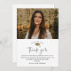 Simple Script Black and White Photo Graduation Carte de remerciements avec élégante feuille d'or casquette et minimaliste typographie diplômé. Cliquez sur le bouton Modifier pour customiser cette conception.