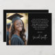 Carte de remerciements de graduation avec votre photo à gauche et message personnalisé sur un arrière - plan noir ou personnalisé.