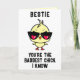 Vous cherchez un moyen unique d'express votre amour et votre humour à votre ami le plus proche? Notre drôle de carte de salutation au poulet est le choix parfait pour votre meilleur ami lors de son anniversaire! Customisez-le en ajoutant votre propre message personnel. Design présente un bébé cool portant des lunettes de soleil avec un coeur rouge. Excellente façon d'envoyer des voeux d'anniversaire à votre bestie préféré.